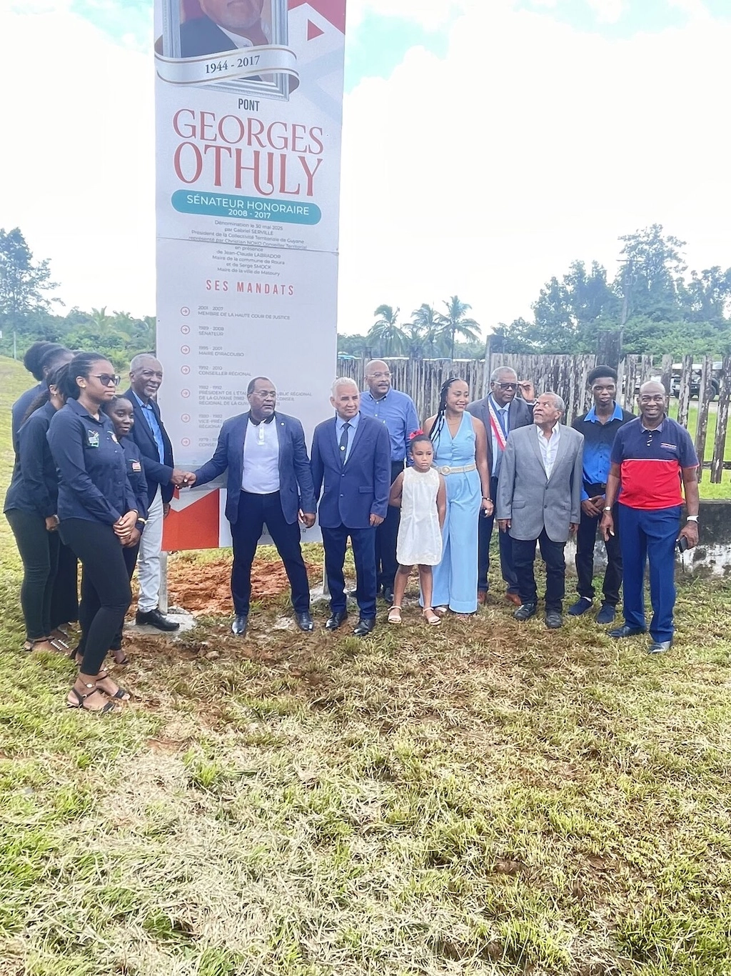 J’ai eu l’honneur de participer, aux côtés de mon époux Antoine Karam, à la cérémonie de dénomination du Pont du Mahury, à l’entrée de la commune de Roura, en hommage au Président de. région et Sénateur Honoraire Georges Othily.